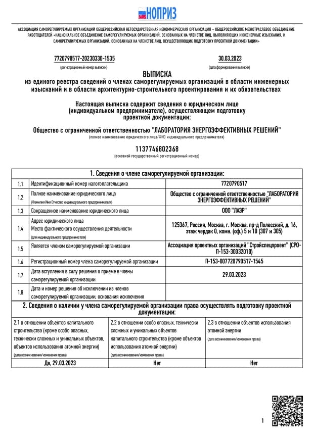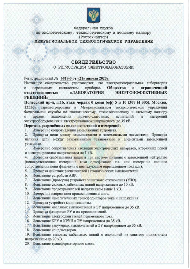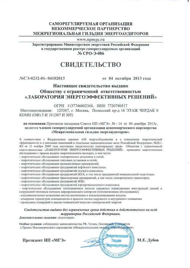 ООО "ЛАБОРАТОРИЯ ЭНЕРГОЭФФЕКТИВНЫХ РЕШЕНИЙ" ИНН 7720790517, ОГРН 1137746802368